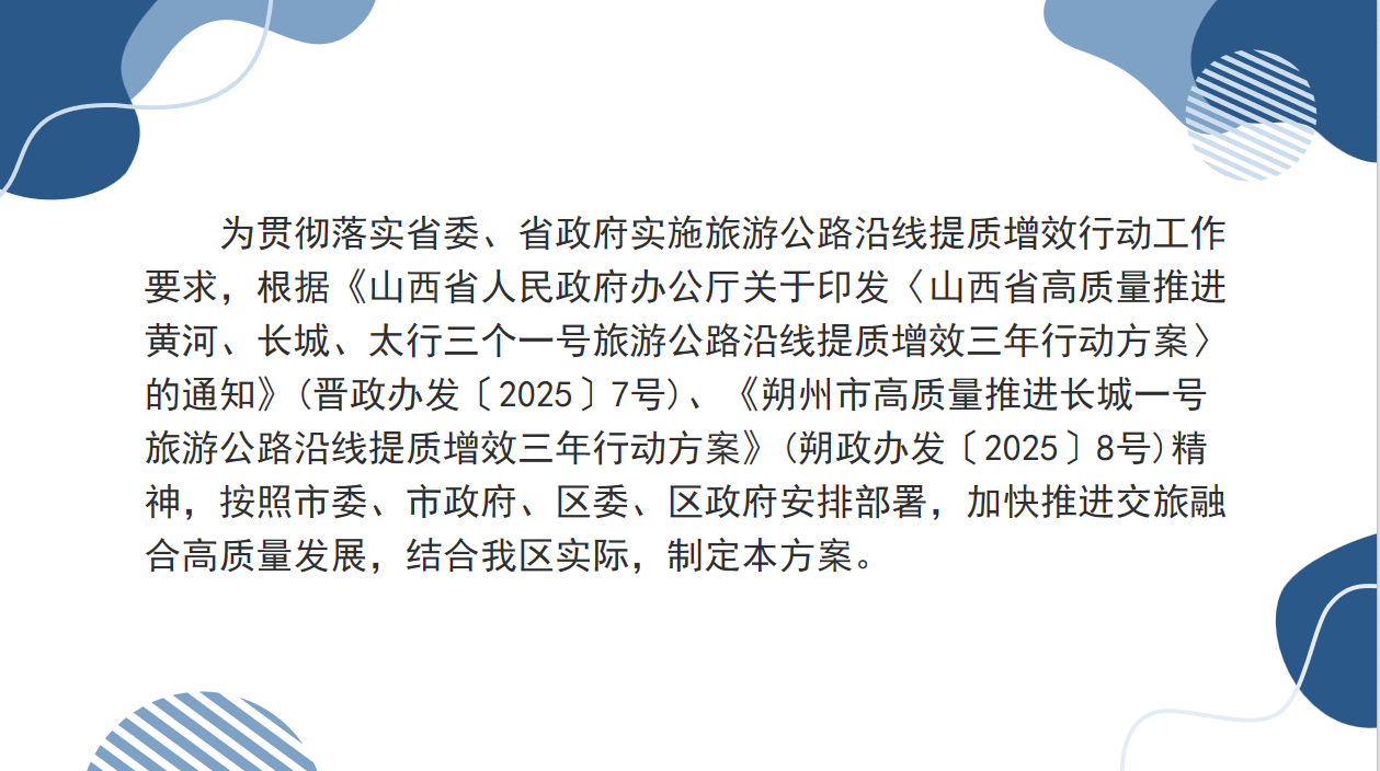 原文鏈接:朔州市朔城區人民政府辦公室關于印發《朔州市朔城區高質量推進長城一號旅游公路沿線提質增效三年行動方案》的通知